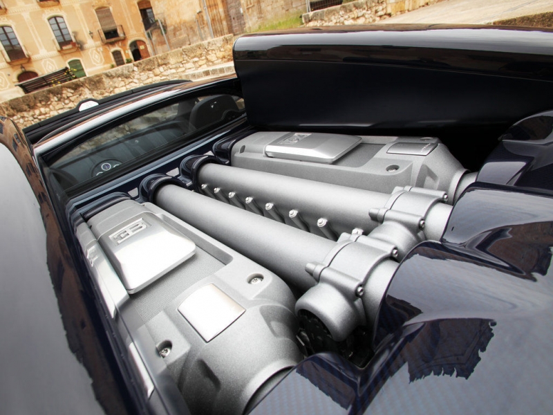 В качестве силового агрегата модели был выбран двигатель W16, оснащенный 4 турбонагнетателями. Его объем составляет 7993 кубических сантиметров, а мощность варьируется в пределе от 1006 до 1026 л.с., хотя официально производитель заявляет его мощность равной 1001 л.с. Чтобы охладить настолько мощный двигатель в конструкцию было внесено 10 радиаторов. Двигатель оснащается специальным газораспределительным механизмом, состоящим из четырех распределительных валов и 64 клапанов. Крутящий момент, наибольшее значение которого составляет 1250 Н∙м, предается на все колеса при помощи муфты и 3-дискового сцепления.